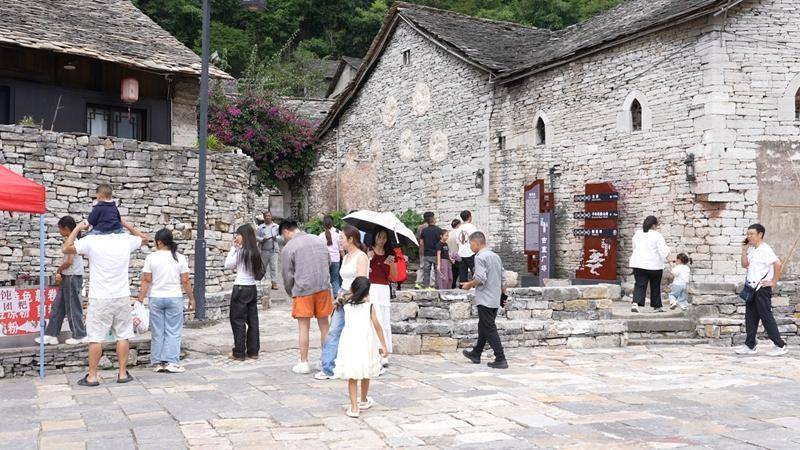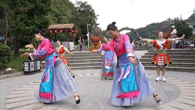 游客们悠然漫步在古寨的石板小径上,只见布依族传统民居错落排布,斑驳的石墙静静诉说着岁月沉淀的故事。身着特色民族服饰的布依族乡亲热情好客,早早在景区门口准备好民族舞蹈表演,独特的迎接仪式引得游客们纷纷举起手机,定格下这极具民族风情的瞬间。