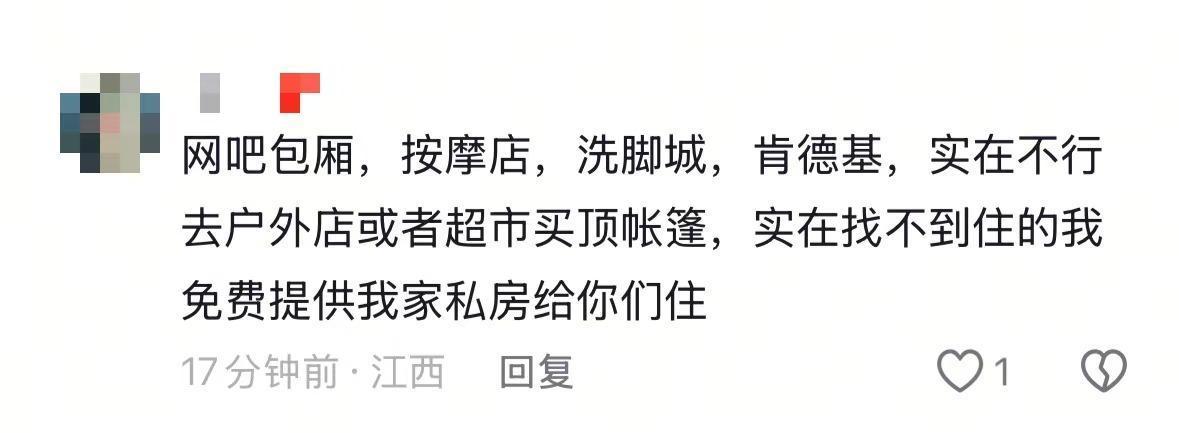 不少当地居民在评论区提出建议,称其实可以不用只选择市区的酒店,周边的县镇如乐平市、浮梁县、鄱阳县、涌山镇等都距离不远,可以去寻找酒店或民宿。还有当地居民喊话,称若实在找不到住的地方,可以来自己家借宿一晚。